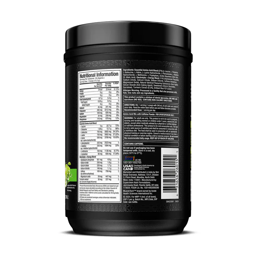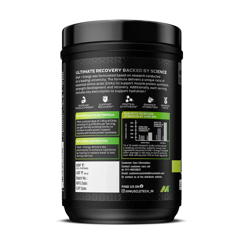 MuscleTech Eaa + Energy | Essential Amino Acids + 100Mg Caffeine | Replenish Electrolytes | Ultimate Recovery 7.4 grams Eaa | 4.5 grams Bcaa | 3 grams Leucine | 30 Servings | Tropical Twist , Powder