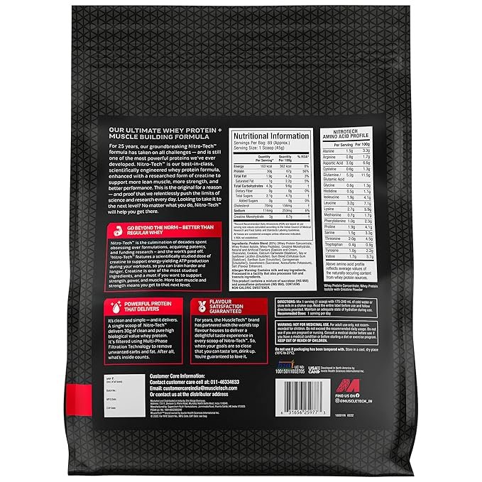 - MUSCLE BUILDER for MEN & WOMEN – MuscleTech Nitro-Tech has 5.2g of glutamine & precursor, 6.7g of BCAAs and a clinically studied 3g dose of HPLC-tested creatine monohydrate to help build lean muscle, increase strength and enhance performance for men & women